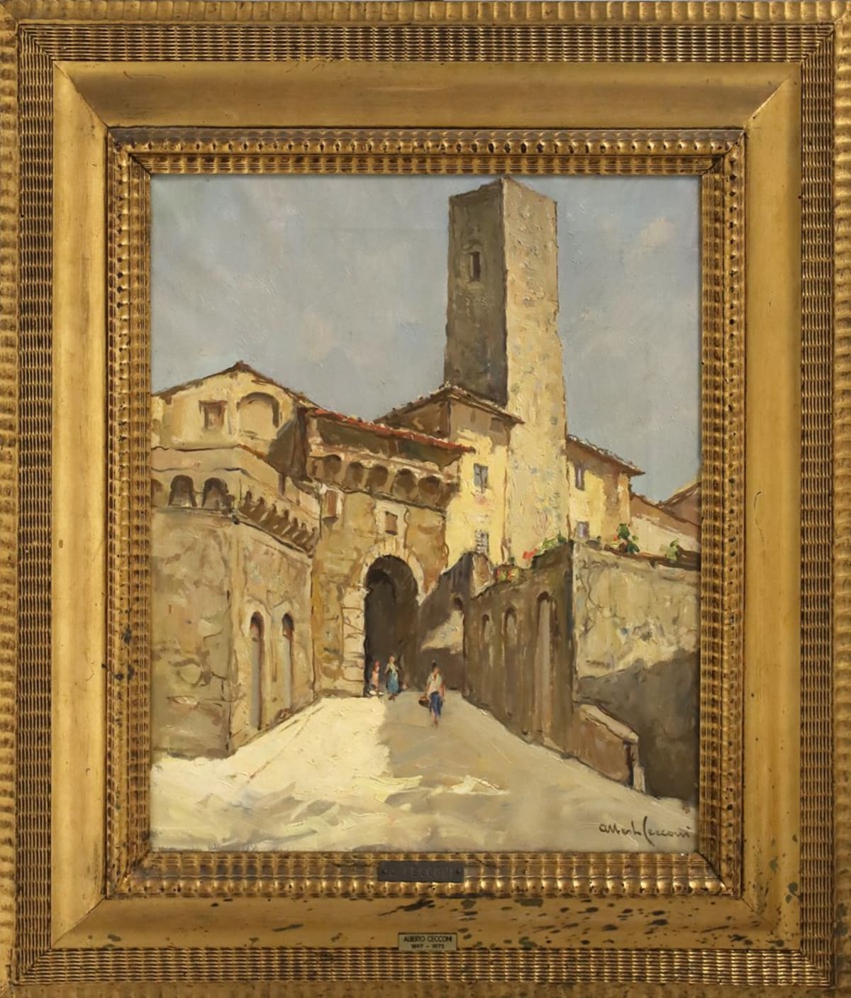 Firma in basso a destra Artists fiorentino, si formò tra la sua città natale e Roma. Si spostò poi in Sudamerica dove espose a Buenos Aires, Lima, Rio de Janeiro. Partecipò alla Biennale del 1920, del 1924 e del 1928. Splendido scorcio di San Gimignano.