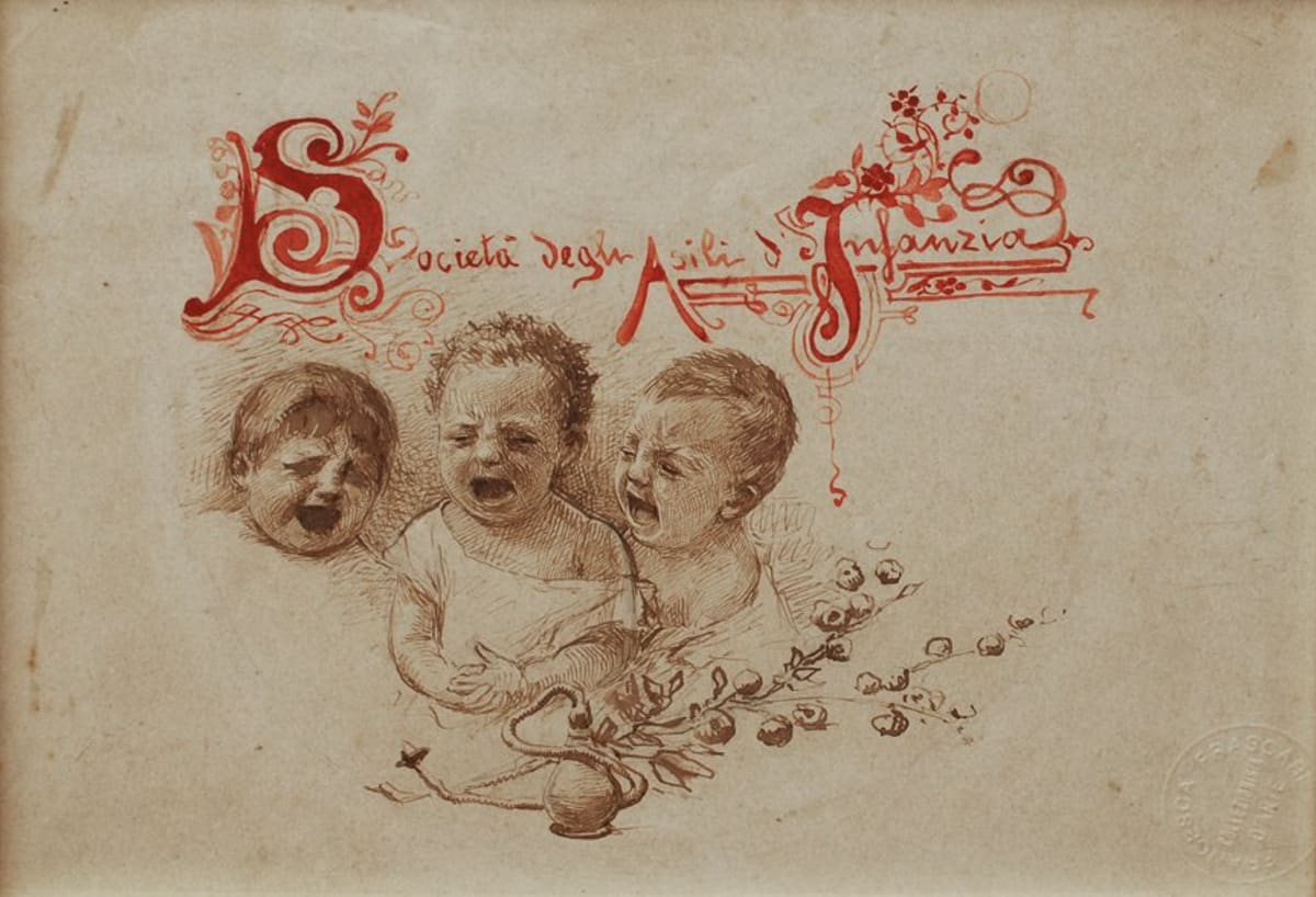 Attilio Simonetti, Roma 1843 - Roma 1925, pittore ed antiquario italiano attivo nella seconda metà del XIX secolo. Amico e allievo di Fortuny, già nel 1868 espose due opere a Brera, mentre nel 1877 presentò una coppia di dipinti a Napoli, acquistati dal Principe Umberto, futuro Re d'Italia. Nel 1875 fu tra i fondatori dell'Associazione degli Acquarellisti Romani. Sul retro reca un cartiglio ove si legge “N° 12 …questo dipinto a seppia/china marrone è opera del pittore romano Attilio Simonetti (Roma 1843-1925) titolo della china è “la Società degli Asili d’Infanzia .