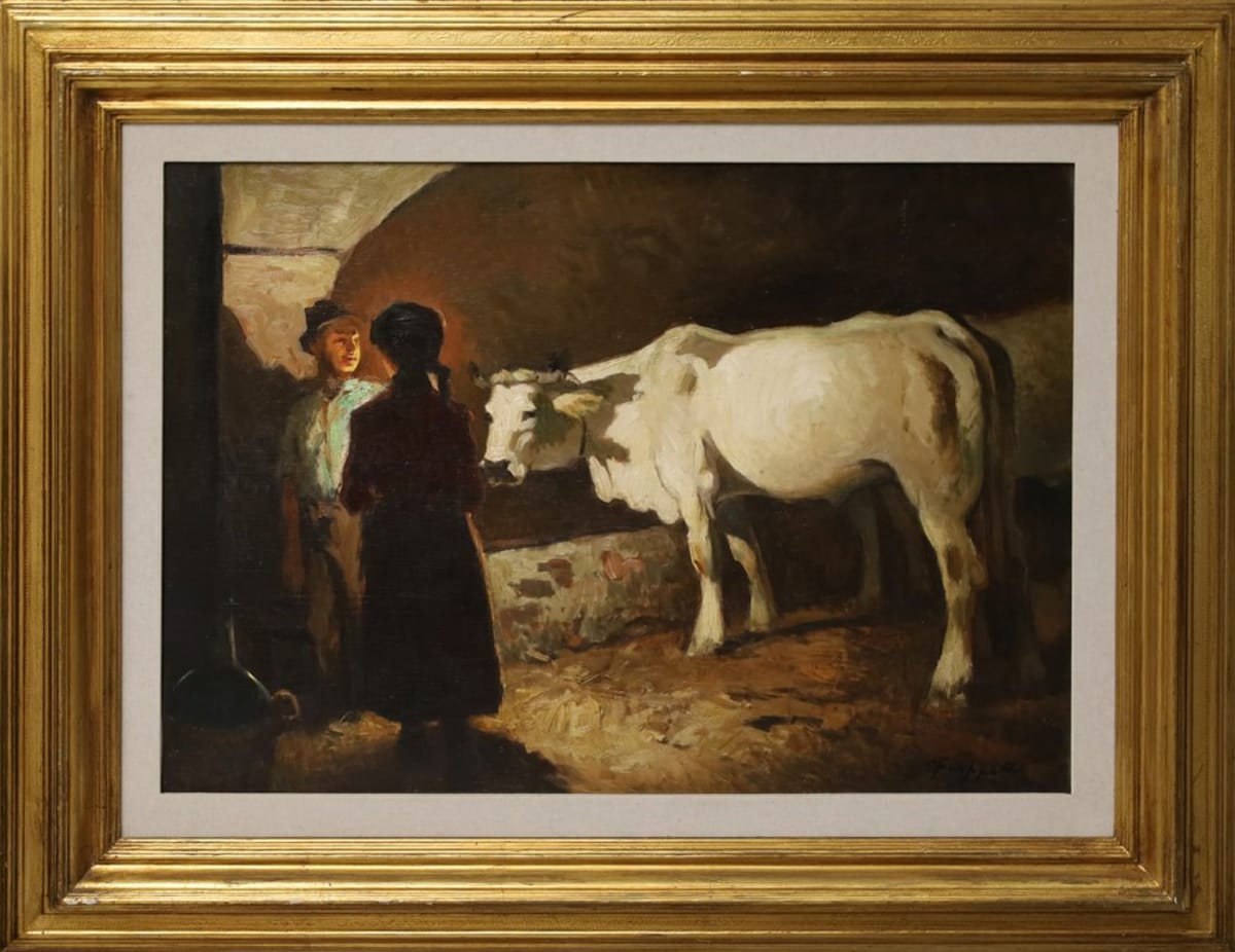 Firma in basso a destra Filippelli si formò all'Accadermia di Firenze e fu tra i principali pittori labronici attivi nel corso del Novecento. Si specializzò nella rappresentazione di scene di vita familiare in interni, come nel caso del nostro splendido dipinto. Fu presente, sempre con grande successo, nelle più importanti rassegne italiane del suo tempo.