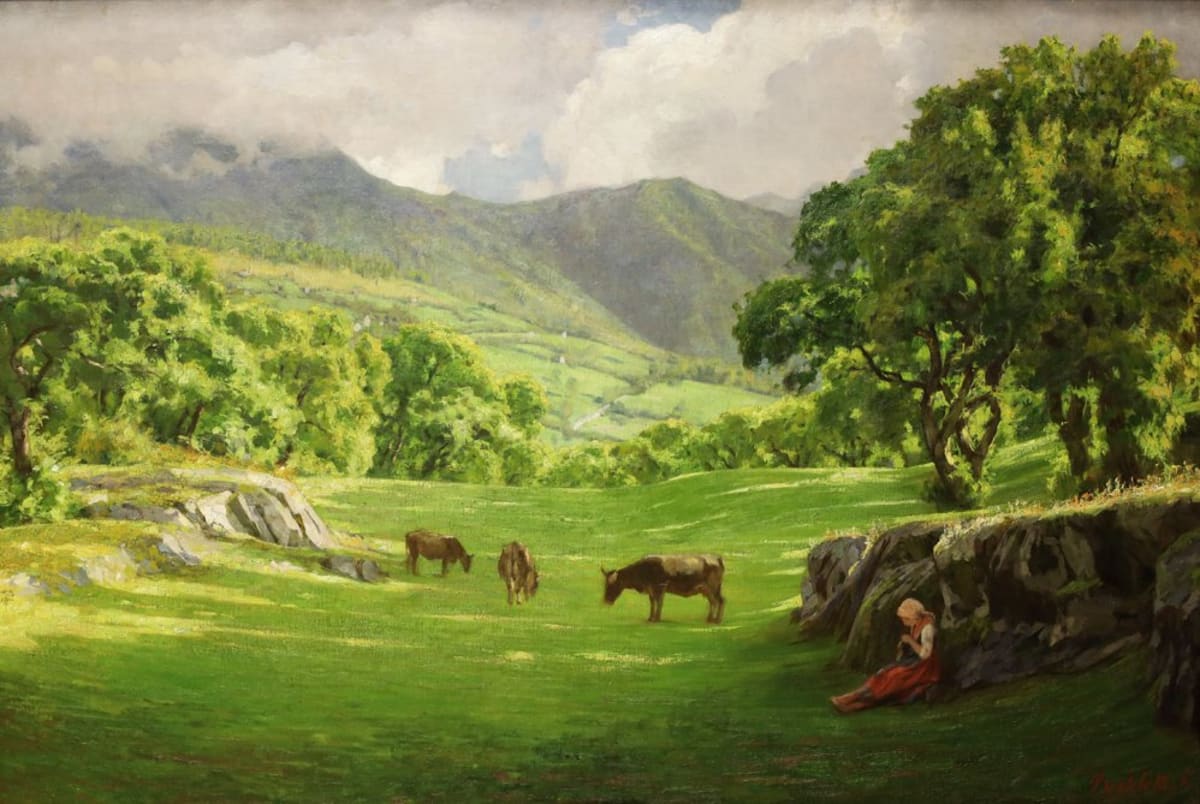 Firma in basso a destra; antico cartiglio a retro Importante dipinto di Cesare Bertolotti, artista formatosi tra Firenze, Brera, Roma e Monaco di Baviera. Esordì nel 1882 a Roma, prendendo parte alle principali esposizioni del suo tempo, vincendo nel 1914 il Principe Umberto. Grande decoratore e frescante, i suoi soggetti più riusciti furono paesaggi toscani e bresciani, oltre al Lago d'Iseo. Splendido paesaggio di Paspardo, eseguito nel 1925.
