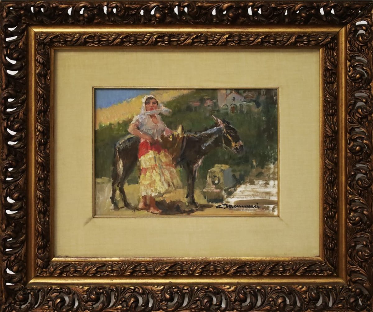 Firma in basso a destra Importante opera di Mannucci, artista che si formò a Firenze e trascorse alcuni anni a Parigi, dove espose ripetutamente. Realizzò paesaggi, ritratti e figure femminili, per cui è particolarmente ricercato. La nostra qualitativa opera è da collocarsi proprio tra quelle maggiormente rappresentative e qualitative dell'artista, e si distingue per la qualità esecutiva e la raffinatezza del soggetto.