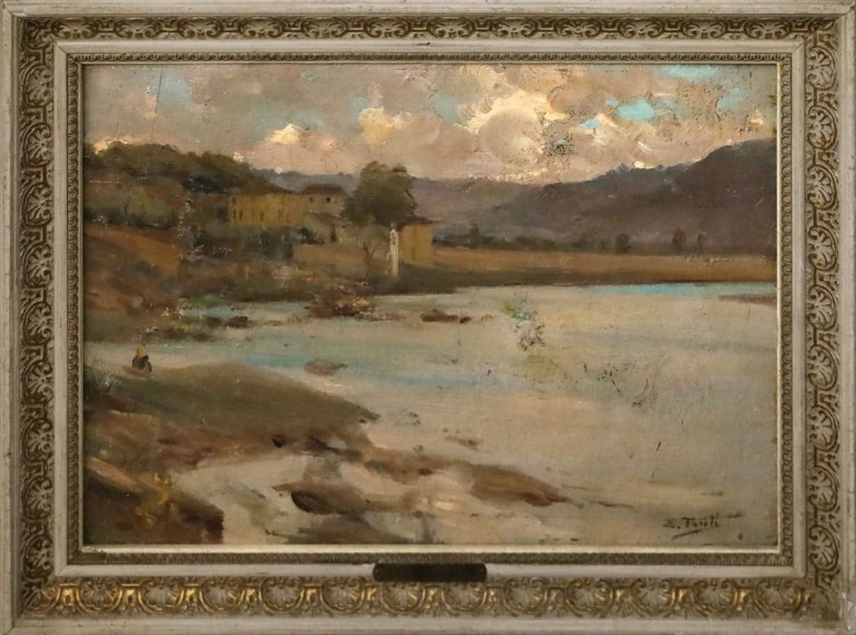 Firma in basso a destra Rara opera di Egidio Tonti, pittore salentino nato a Presicce nel 1887 e trasferitosi a Napoli nel 1905, accolto dal conterraneo Giuseppe Casciaro. Nel 1907 è a Firenze, prima di emigrare, nel 1922, negli Stati Uniti. Alcune fonti lo riportano a Roma nel 1950