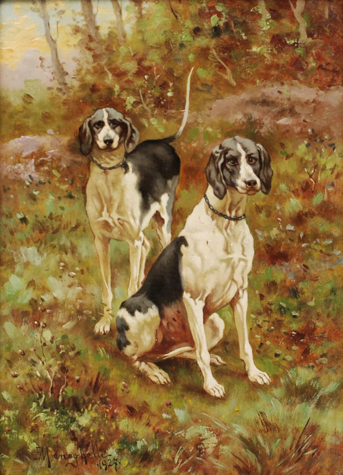 Firma e data in basso a sinistra Meneghelli è stato un importante artista attivo a cavallo dei due secoli, specialista dei soggetti animalisti e degli interni di museo, da sempre soggetti molto collezionati. Fu a lungo negli Stati Uniti, ed eseguì anche paesaggi veneziani e scene di genere.