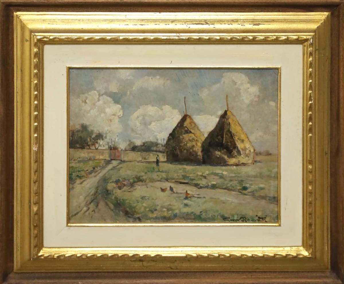 Firma in basso a destra Romiti esordì a Milano nel 1898 e fu presente nelle principali rassegne italiane ed estere. Fu uno dei più importanti esponenti del Gruppo Labronico, e si occupò di paesaggismo e ritrattistica. Fu socio onorario dell'Accademia di Belle Arti di Firenze, sue opere presso le Gallerie d'Arte Moderna di Firenze e Novara