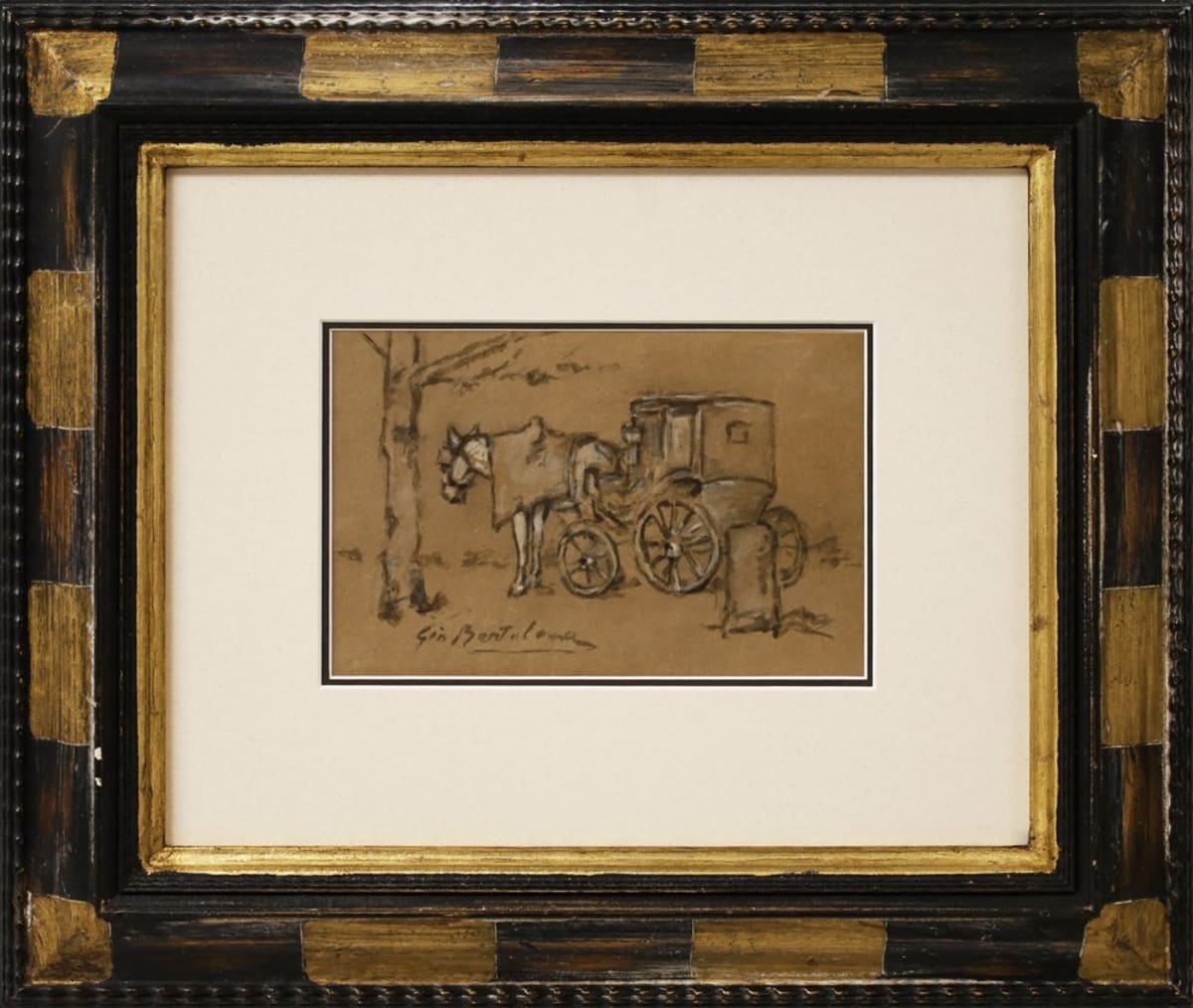 Firma in basso a sinistra Bartolena, nipote del pittore Cesare, fu allievo di Fattori e in contatto con Lega e Signorini. Da sempre vicino allo stile fattoriano, fu ottimo post impressionista, con una istintività cromatica e velocità esecutiva, soprattutto espressa in paesaggi toscani, rappresentazioni di animali, in particolare cavalli, come nel caso di questa interessante tecnica mista.