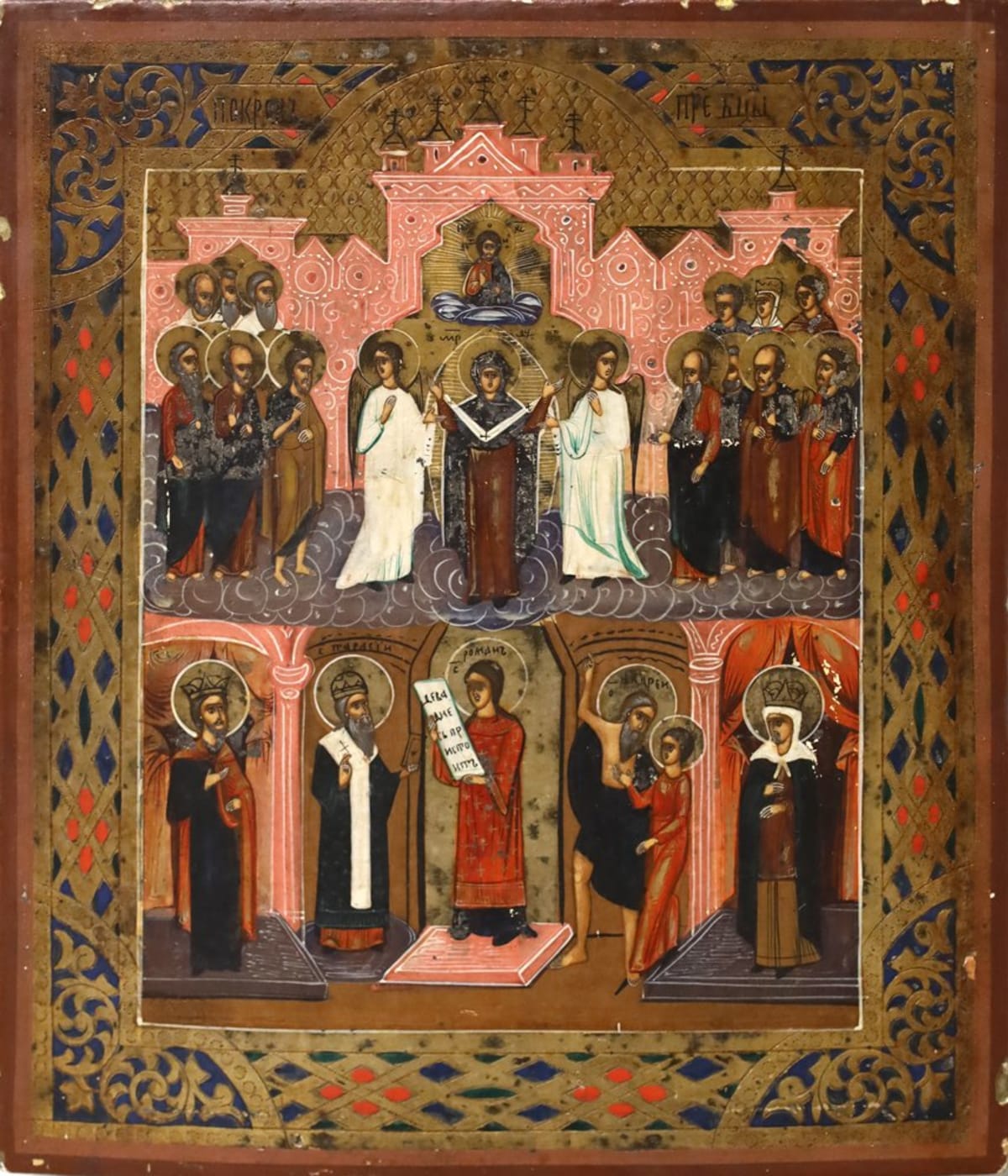 L'icona qui da noi proposta, tempera su tavola dipinta e dorata, della sinassi commemora alcuni santi, celebrata nel giorno successivo a quello di una festa importante di cui sono stati coprotagonisti. Sinassi dunque allude alla presenza di un gruppo di persone, angeli, santi e sante, metropoliti e monaci, che attorniano una raffigurazione centrale. Russia, XIX secolo