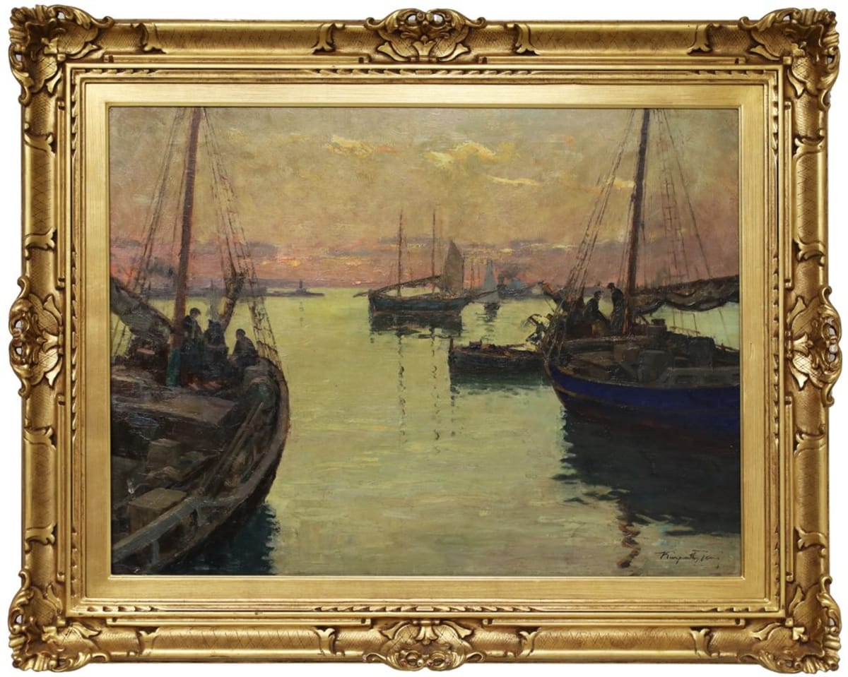 Firma in basso a destra Pittore ungherese, specializzato nel paesaggio, lavorò a lungo anche in Italia, realizzando soprattutto marine e paesaggi lacustri. Splendida scena di pesca eseguita nei primi anni del Novecento, di grande qualità e gusto cromatico.