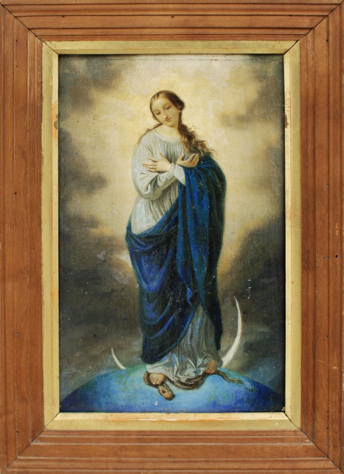 Lorenzo Gramiccia, Roma 1702 - Venezia 1795, vissuto lungamente a Venezia, ma del quale si conoscono in città pochissime opere, tra cui l'Addolorata del 1777 nella Chiesa di San Giacomo dell'Orio. Dipinge anche opere di piccolo formato, come la Vergine Immacolata olio su rame pubblicata dal Marini in "Pittura veneta", pagg.478/479, molto vicina alla nostra, per la delicatezza di forma e colore, da sembrare quasi un pastello.