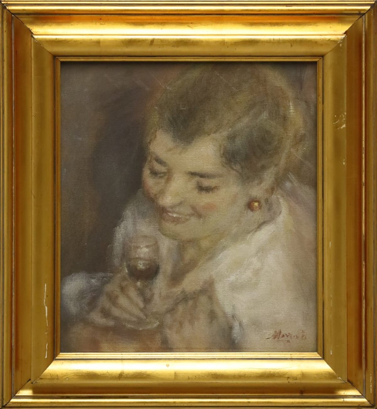 Piacevole opera di Natale Sisto Morzenti, interprete della pittura bergamasca a cavallo tra il XIX ed il XX secolo. Viaggiò dappirma in America, per fare ritorno in Italia frequentando l'Accademia Carrara di Bergamo sotto la cattedra di Ponziano Loverini. Partecipò alle rassegne più significative del proprio tempo tra le quali l'Esposizione Nazionale di Brera (1912), la Permanente di Milano (1916) e la Biennale di Venezia (1928). Fu prittore di autoritratti, figure, scene di ambiente e si dedicò anche alla raffigurazione di soggetti a carattere sacro.