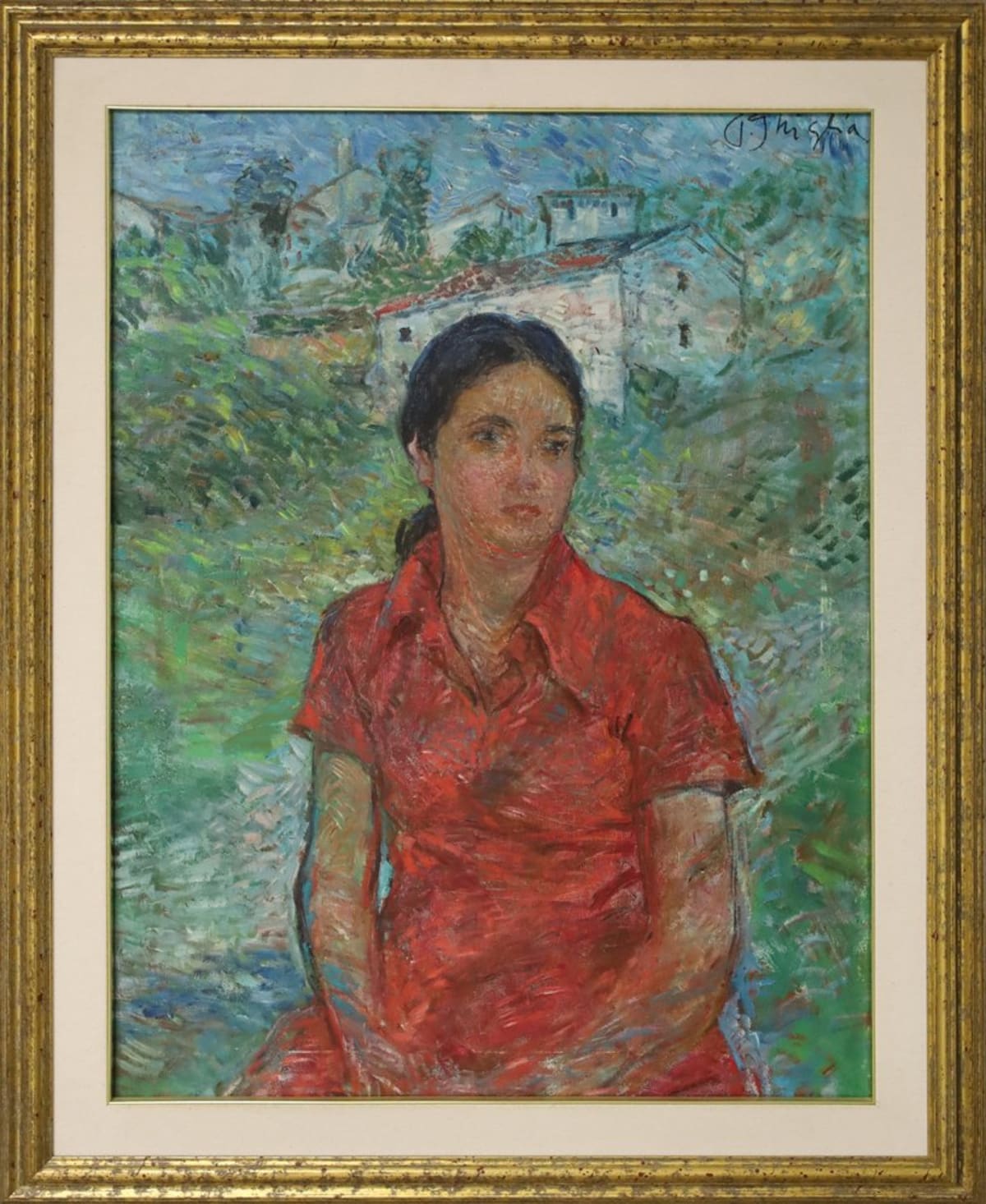 Firma in basso a sinistra Interessante figura femminile di Paulo Ghiglia, figlio di Oscar e valente artista del pieno Novecento. Espose a Milano, Roma, trasferendosi per diversi anni alla Verna, che divenne spesso soggetto delle sue opere. Soggiornò anche a lungo negli Stati Uniti, e sue opere sono conservate in vari musei in tutto il mondo.