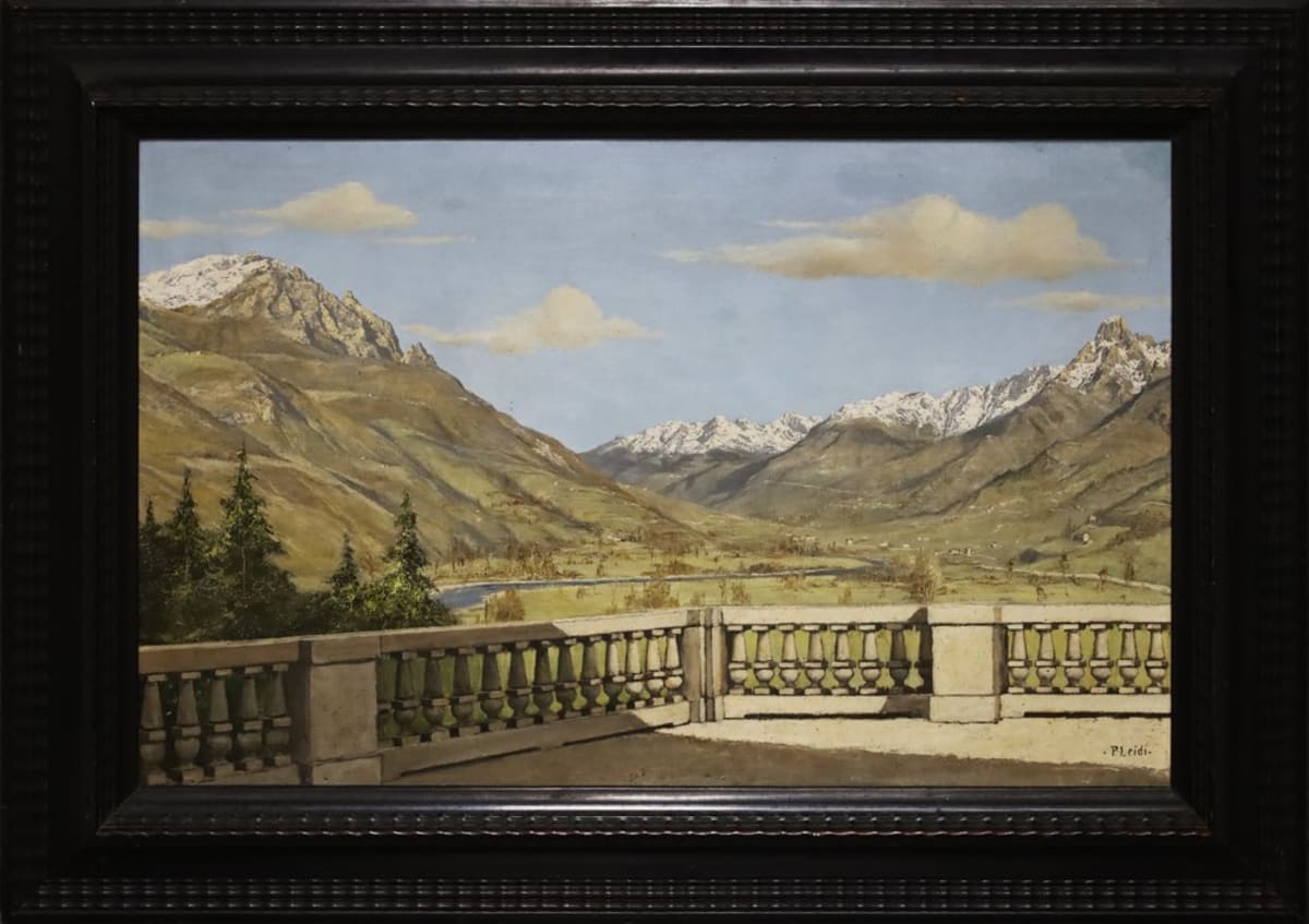 Firma in basso a destra Dipinto novecentesco di Pietro Leidi, Brescia 1892 – Bedizzole 1976, ritraente una vista mozzafiato sulla Concarena. Formatosi presso lo studio di Luigi Rossi a Lugano, si perfeziona a Firenze e viene premiato alla scuola bresciana Moretto per le “splendide figure”. La sua attività espositiva risale a poco oltre il primo decennio di secolo e le sue opere sono coerenti con i generi pittorici attuali nel periodo: partecipa ad una sorta di realismo socialista unito alla contemplazione luminosa di magnifici paesaggi montani. Il suo stile si rifà a pittori come Filippini e Pelizza da Volpedo.