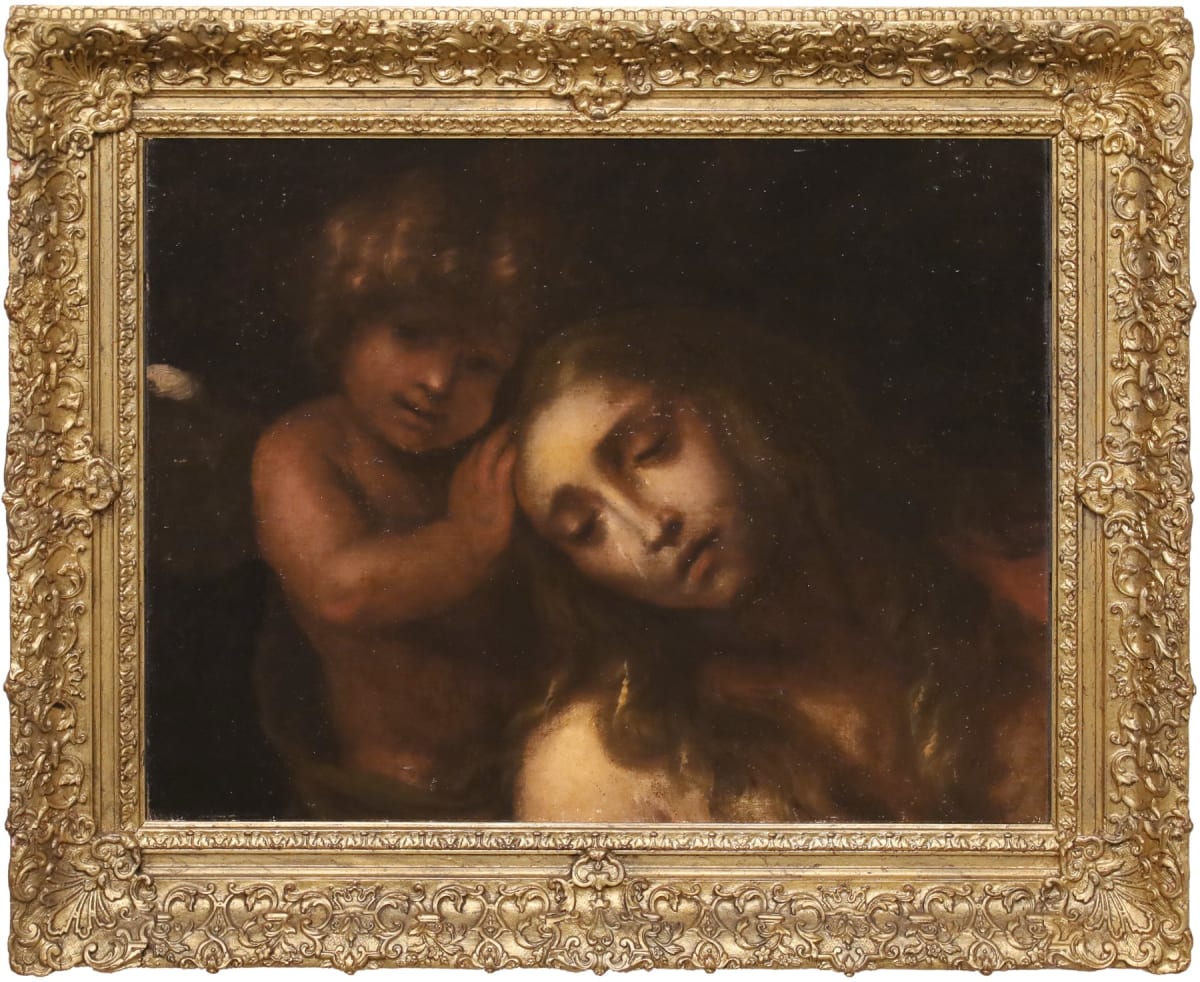 L'immagine della Maddalena in preghiera, cara all'iconografia seicentesca, in questa tela viene rappresentata con una sensualità intensa. I lunghi capelli sciolti scendono sulle spalle. Il capo è leggermente inclinato, lo sguardo è assorto, la bocca è socchiusa come in un sospiro. La luce scivola dolcemente sull'incarnato e ne fa risaltare le lumeggiature sul colore rosato della carnagione. L'autore del dipinto può essere riconosciuto nel pittore lombardo Francesco Cairo, Milano 1607-1665, pittore si formò molto probabilmente a Milano con Pier Francesco Mazzucchelli detto il Morazzone, dal quale ereditò la tavolozza e la tensione drammatica.